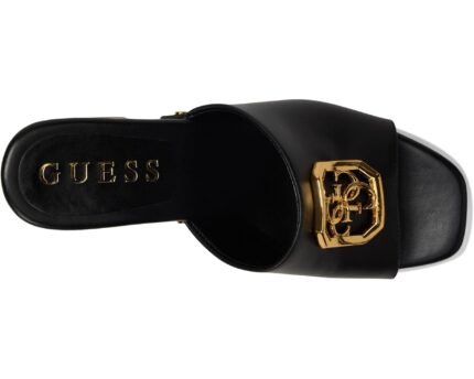 • The GUESS® Qisha is a retro-inspired chunky wedge sandal that elevates both casual and party wear looks. With a studded platform sole, the rubber upper is accented with quattro G gold hardware, becoming a memorable heel in your summer rotation. The slip-on style sandal features a synthetic lining and a synthetic sock insole. The solid block heel adds height to your look.